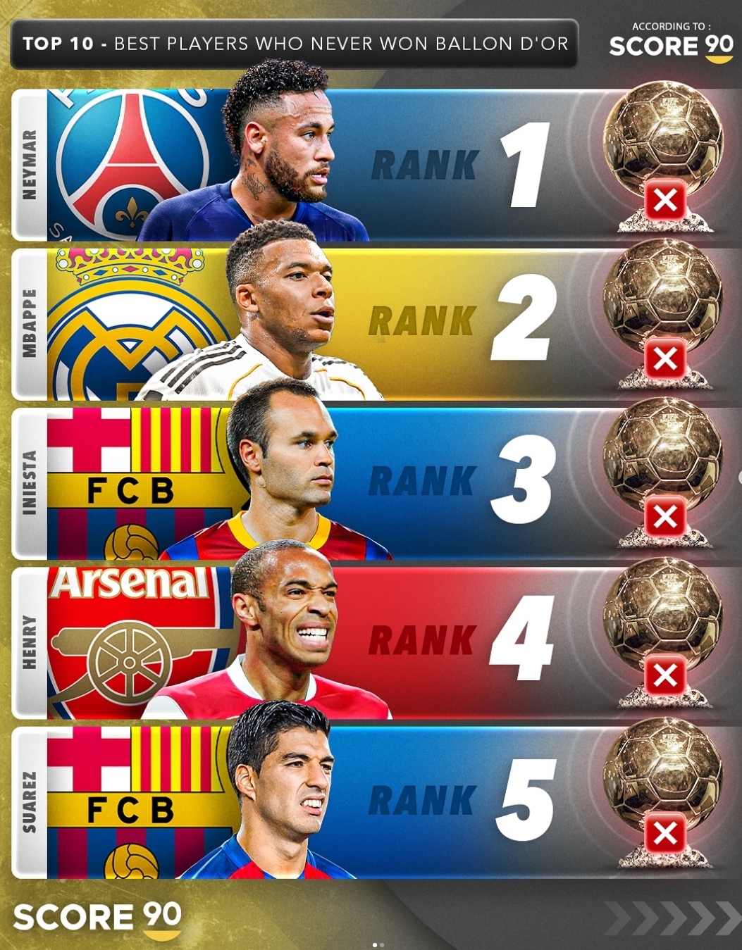 - 발롱도르 수상 실패한 역대급 선수 TOP 10