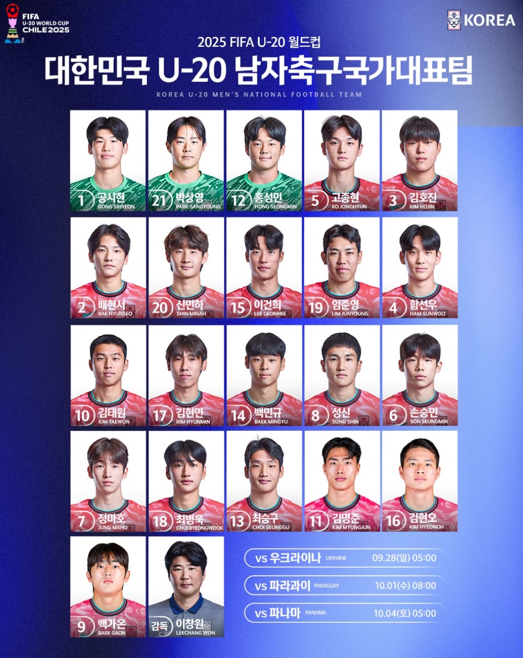 2025 국제축구연맹(FIFA) U20 월드컵이 드디어 9월 28일 칠레에서 개막한다.