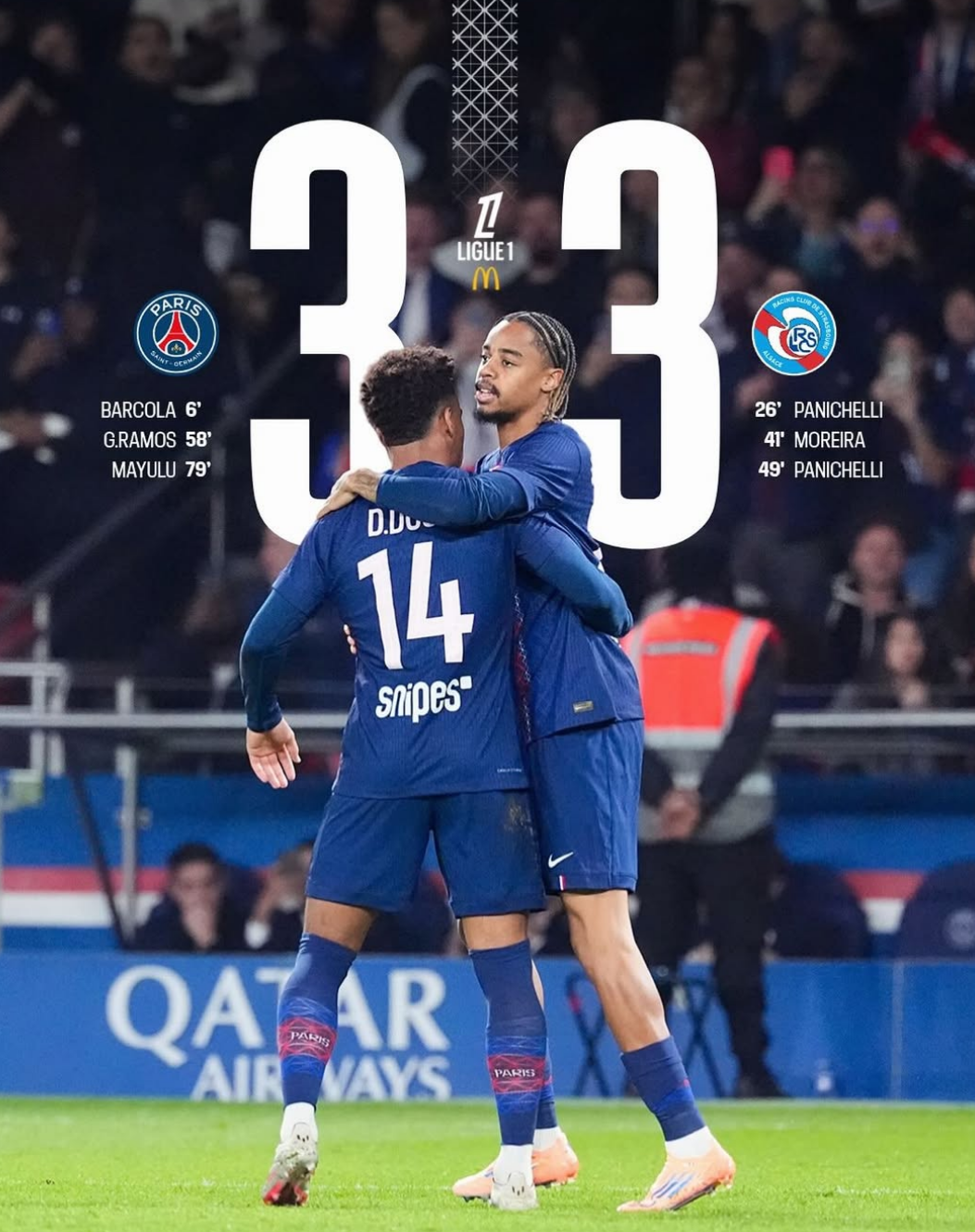 - 경기 결과: PSG는 전반 6분 선제골로 앞서갔으나, 상대에게 전반과 후반에 걸쳐 3골을 내주며 1-3까지 끌려갔습니다. 이후 곤살루 하무스의 PK 득점과 마율루의 동점골로 힘겹게 3-3 무승부를 만들었습니다.
