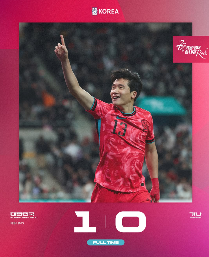 경기의 승패를 가른 결승골은 후반 17분에 터졌습니다. 오른쪽 측면에서 에이스 이강인이 문전으로 **날카로운 '칼날 크로스'**를 올렸고, 이를 박스 안으로 침투하던 측면 수비수 이태석이 머리로 정확하게 연결하며 가나의 골망을 흔들었습니다.